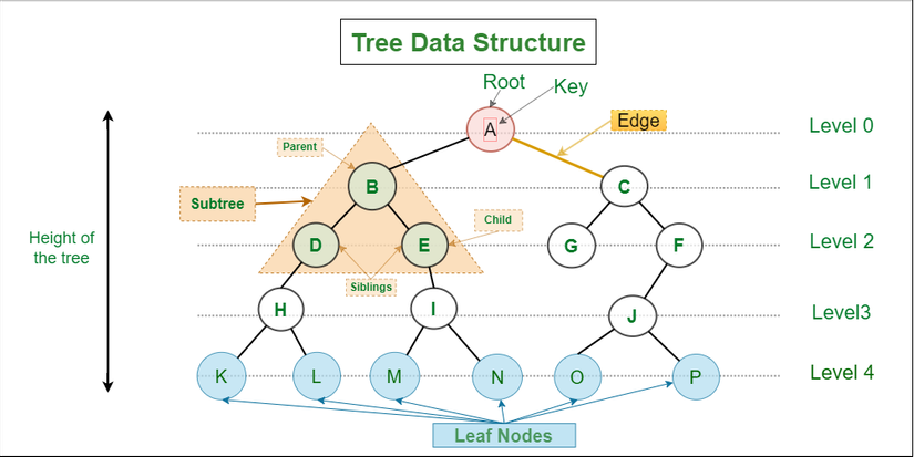Một cái cây thì sẽ có những thành phần, khái niệm: