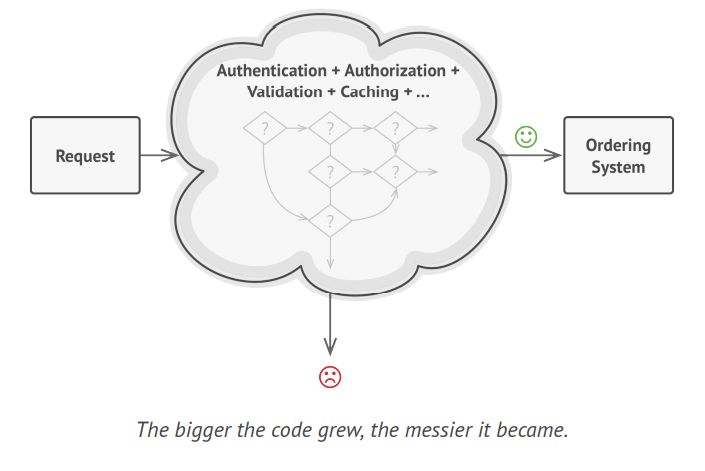 Sau 1 hồi lên kế hoạch, bạn nhận ra những giai đoạn kiểm tra (như kiểm tra user đã đăng nhập, user có quyền admin) cần phải thực hiện tuần tự. Ví dụ nếu việc kiểm tra user đăng nhập bị thất bại thì chúng ta ko có lí do gì để kiểm tra tiếp tục các điều kiện khác.
