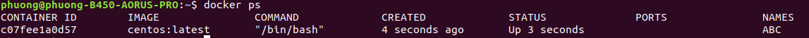 - IMAGE: đây là tên của docker image mà container này dang dùng