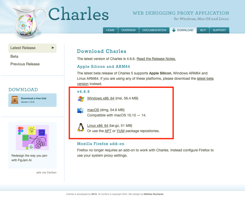 Charles Proxy có sẵn cho nhiều hệ điều hành khác nhau. Hãy chắc chắn rằng bạn chọn phiên bản phù hợp cho hệ điều hành của bạn, ví dụ: Windows, macOS hoặc Linux.