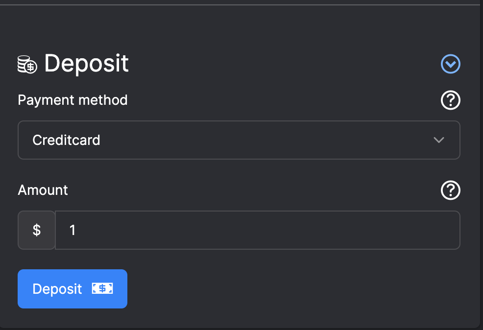 - Sau khi đăng ký tài khoản, bạn chọn "Deposit" để vào màn hình nạp tiền