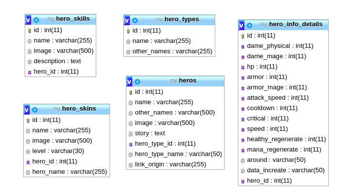 - hero_types: các loại tướng như Xạ thủ, Đấu Sĩ, ...