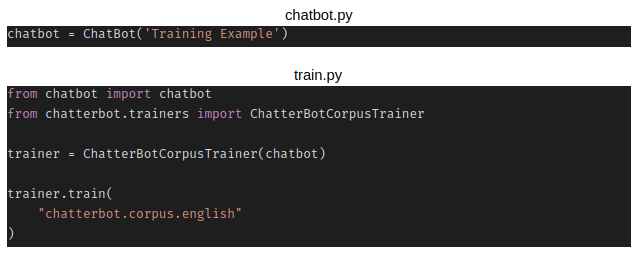 Cho phép chat bot được train bằng cách sử dụng dữ liệu từ ChatterBot dialog corpus. ChatterBot đi cùng với một utility module và corpus data giúp bạn nhanh chóng train chatbot để có thể giao tiếp. Để làm như vậy, chỉ cần chỉ định các module corpus data bạn muốn sử dụng.