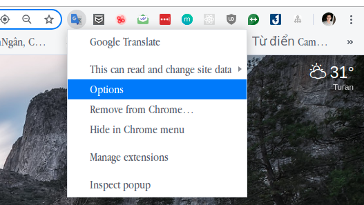 - options_page: Click phải chuột vào extension icon >> Chọn options >> Một html page xuất hiện. Đây là nơi chứa các setting, option của extension
