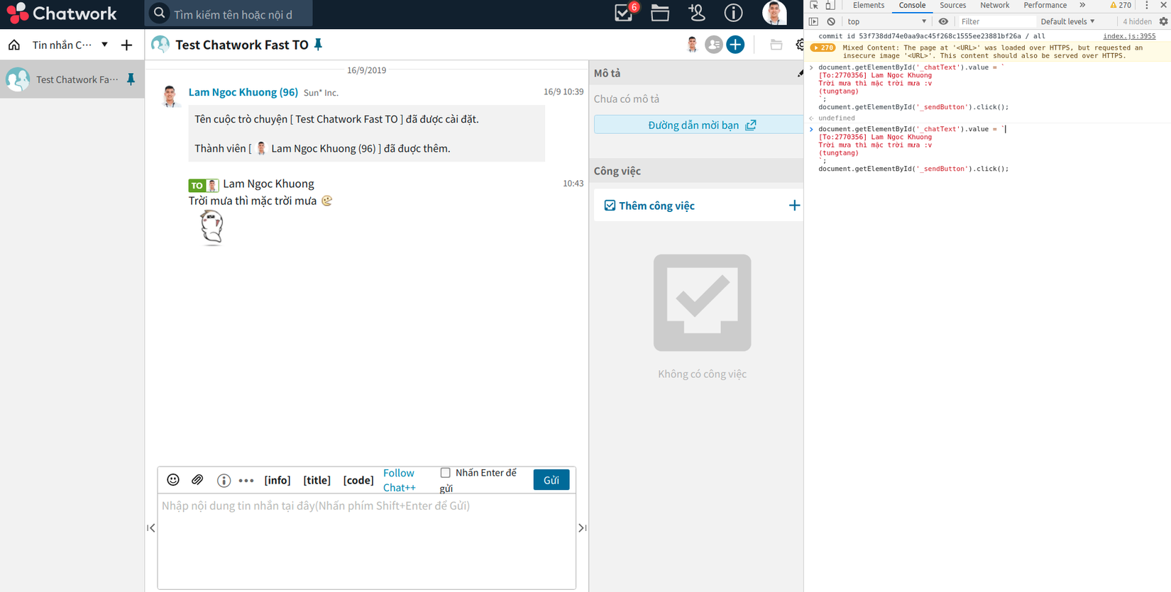xuống console của tab chatwork hiện tại, khi đó tin nhắn sẽ được gửi đi.