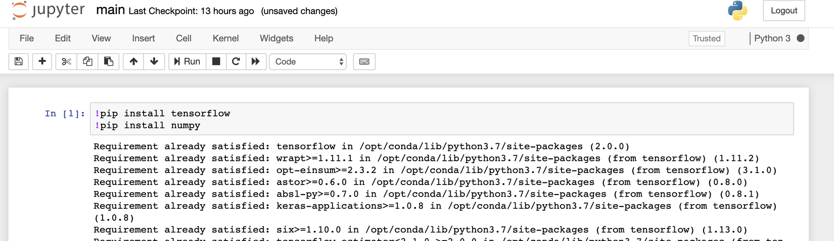 - Và giờ là mình thử thôi. Đầu tiên là cài tensorflow và numpy