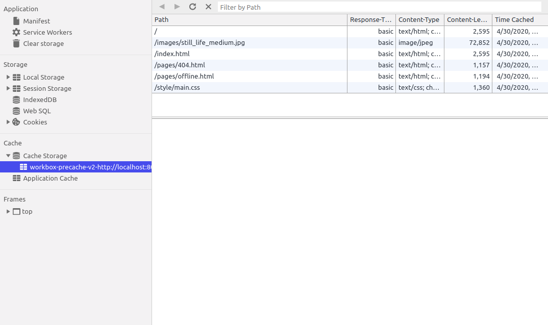 Xem nè, thay vì 1 đống code dài dòng khó hiểu, giờ chúng ta sẽ chỉ cần đúng 1 dòng và workbox đã làm hết phần còn lại. Kiểm tra lại thử xem sao nhé. Trong log của bạn giờ sẽ có thông báo của workbox như sau: