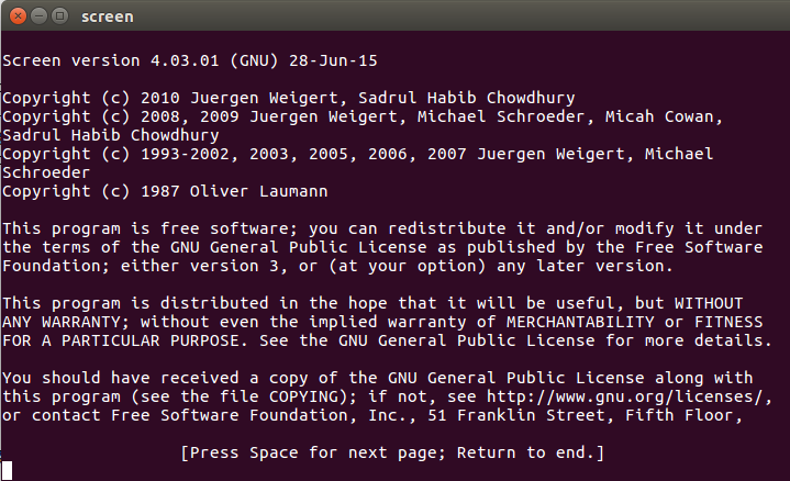 Để bắt đầu một screen session mới chúng ta chỉ cần gõ lệnh screen