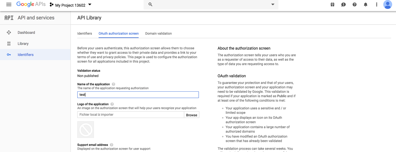- Chọn ID and Oauth (ở tab Oauth authorization screen nhập tên application => và chọn save).