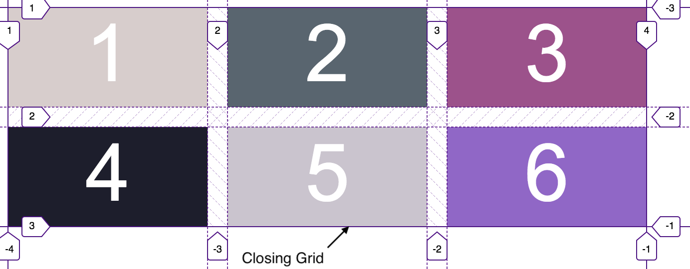 grid-row: 1 / 3 nghĩa là nó sẽ bắt đầu từ track line số 1 tới track line 3 từ trên xuống dưới của hàng.
