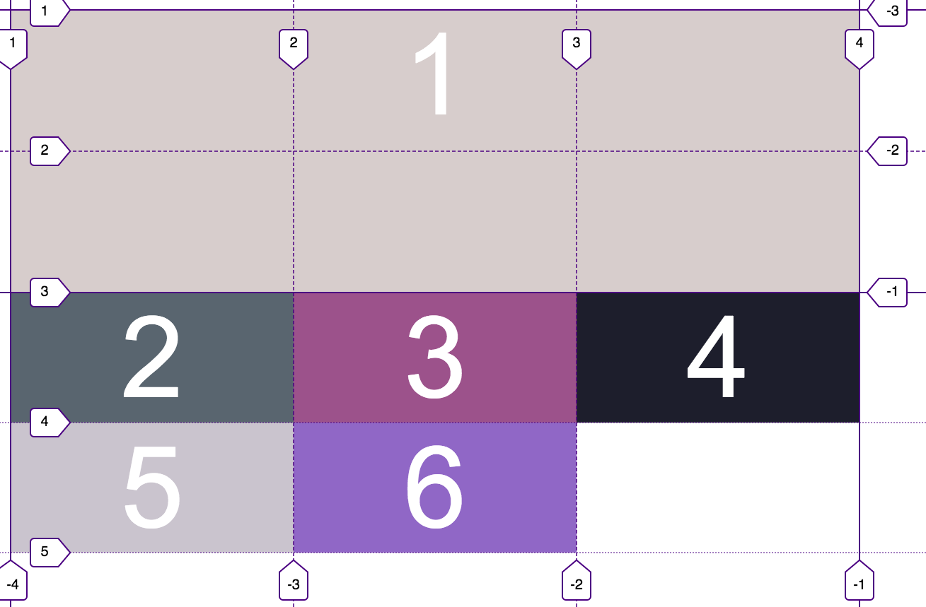 grid-column: 1 / 4 nghĩa là nó sẽ bắt đầu từ track line số 1 tới track line 4 từ trái sang phải của cột.