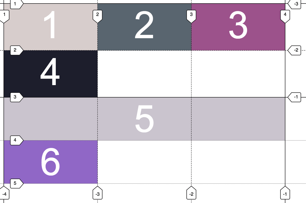 Với CSS Grid, bạn có thể đặt vị trí (position) các thành phần trong grid theo ý muôn. Bạn có thể di chuyển các phần tử con với 4 thuộc tính CSS: grid-row-start, grid-row-start, grid-column-start hoặc grid-column-end. Có 1 điều cần chú ý, vị trí (position) không được thực hiện bởi các cột (grid columns), mà bằng các track line.