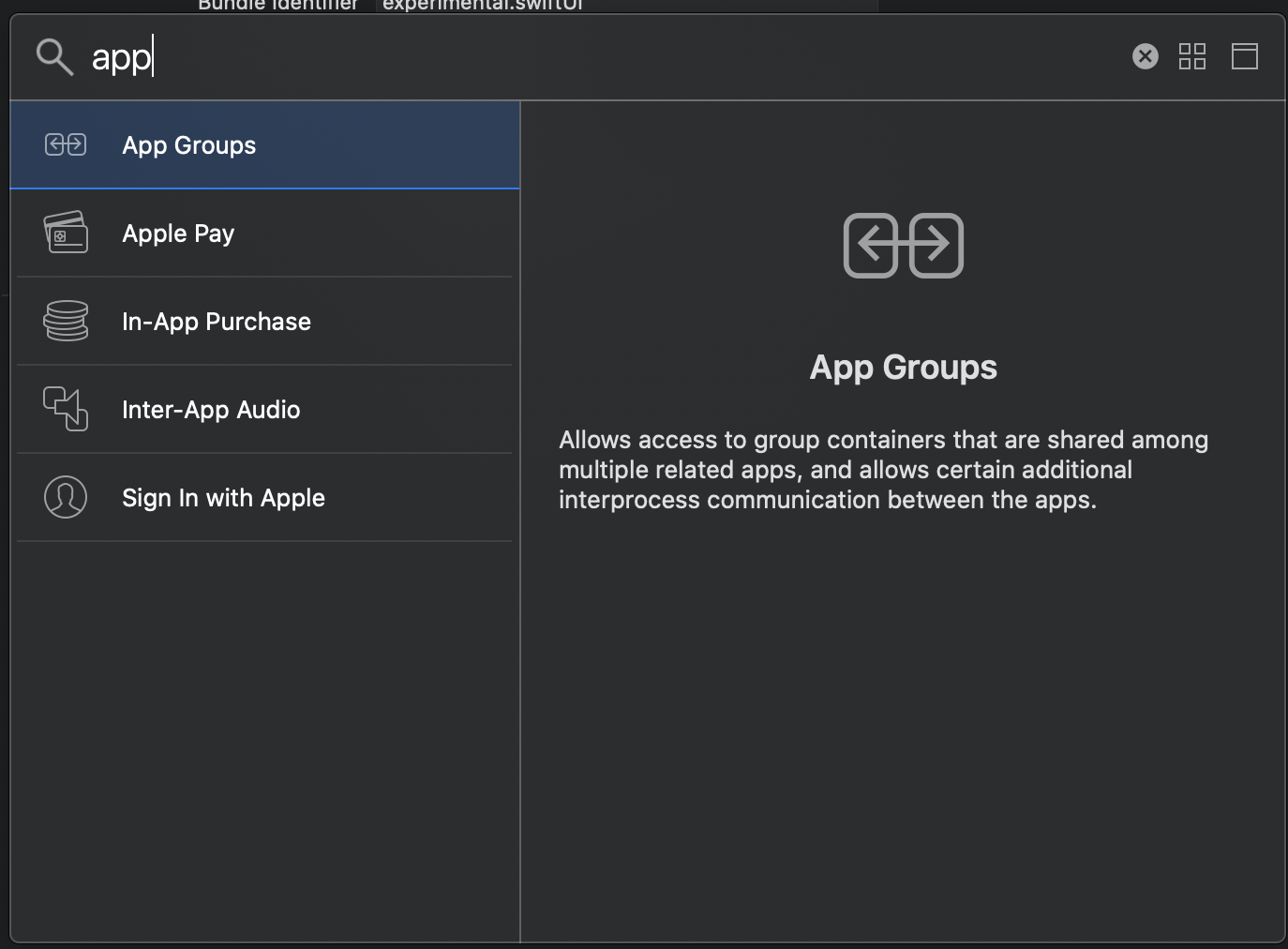 Thêm App Group, trông nó sẽ như ảnh dưới đây: