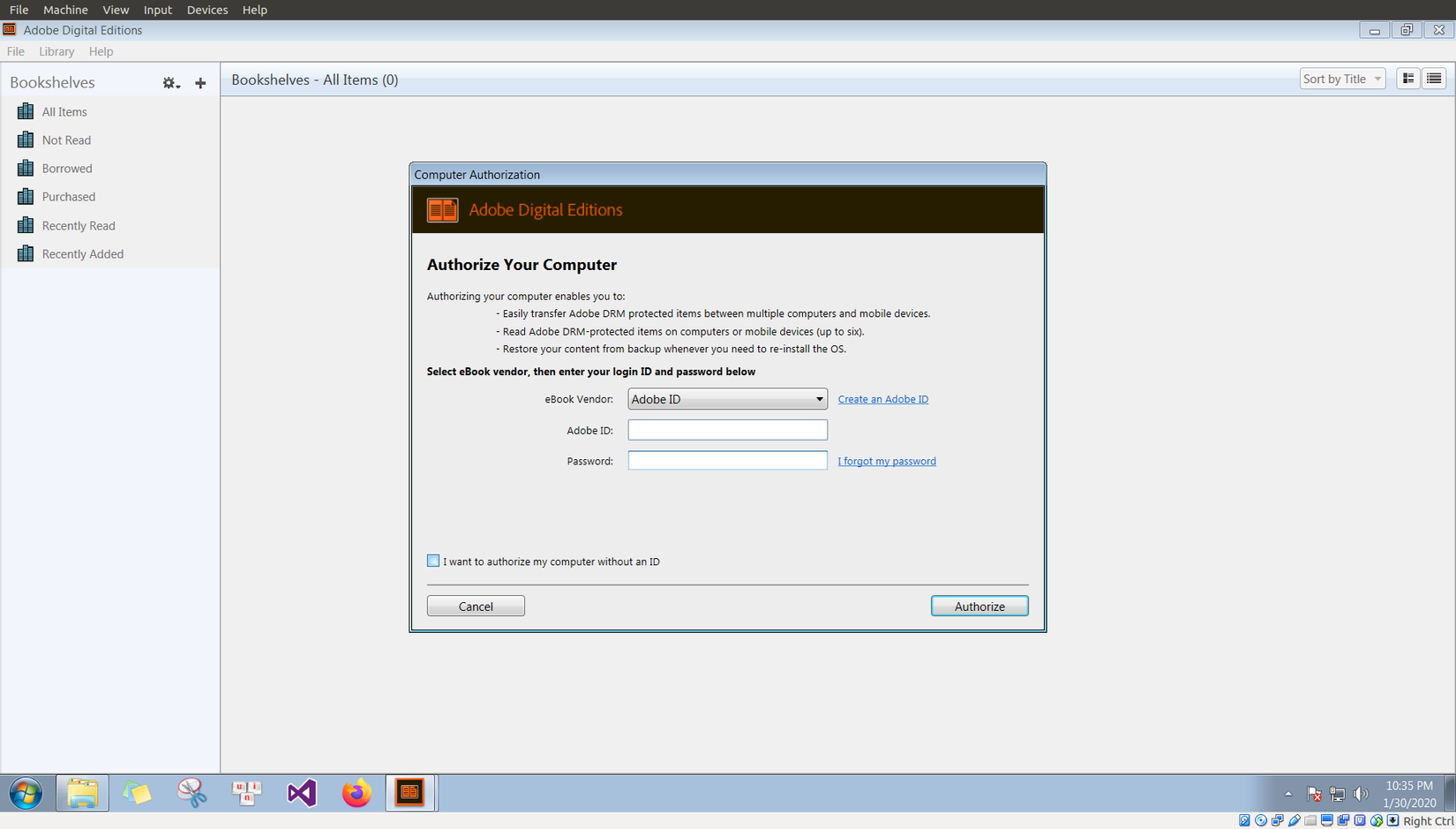 Sau khi cài đặt xong thì các bạn hãy mở file acsm bằng ứng dụng ADE. Trong lần đầu thì ADE sẽ yêu cầu được cấp quyền. Các bạn chỉ cần đăng ký 1 tài khoản Adobe, dùng tài khoản đó để cấp quyền cho thiết bị là được.