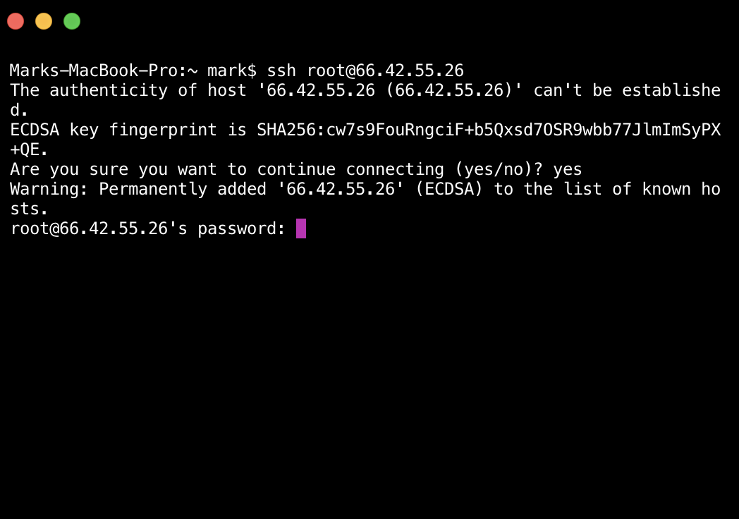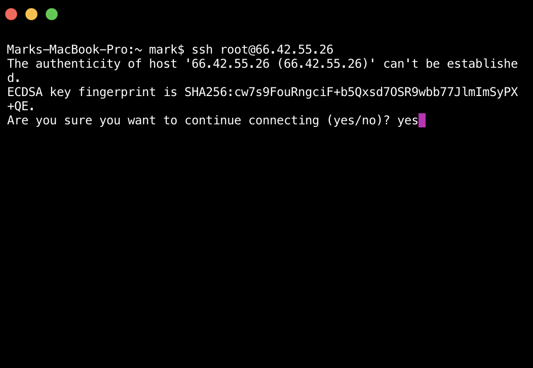 Sau khi “Enter” , terminal sẽ hỏi mọi người một câu muôn thuở là : “anh yêu có chắc là muốn tiếp tục kết nối không ?!’