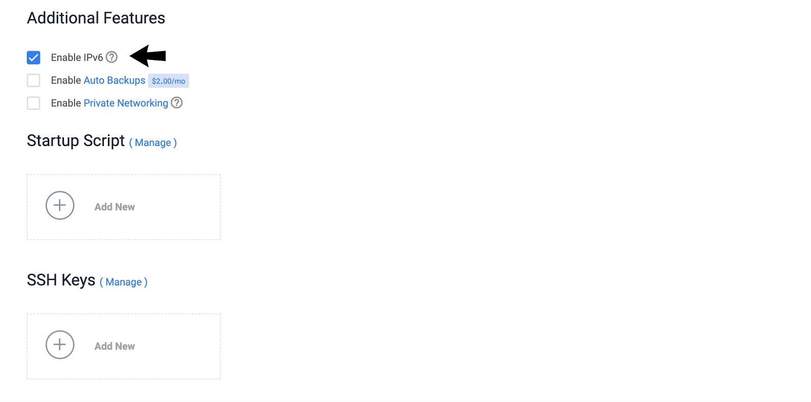 Tiếp theo : Additional Features . Bước này khá quan trọng , mọi người bắt buộc phải chọn “Enable IPv6” thì code mới chạy nha . Còn những tính năng khác thì tuỳ vào nhu cầu của mọi người.