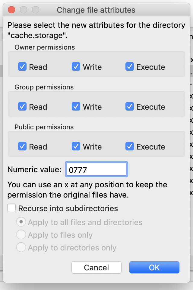 Và bây giờ thì gần như hoàn tất rồi . Mọi người chỉ cần làm một bước cuối là CHMOD 0777 cho folder cache.storage là xong Cụ thể folder đó nằm tại đây :