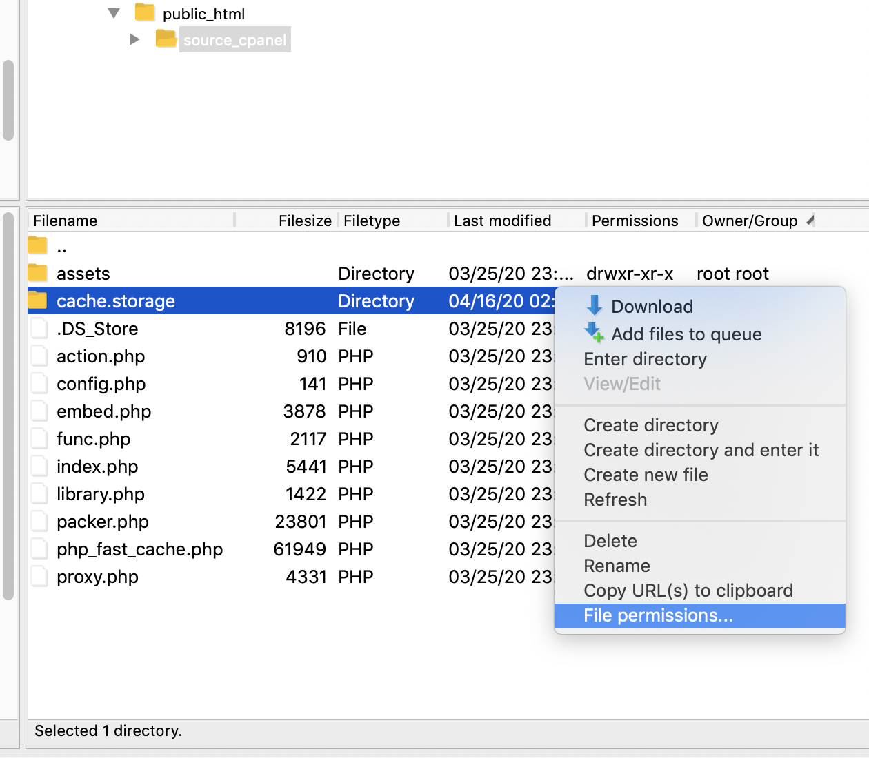 Chuột phải vào folder → File permissions → Thay numeric value : 0777 → Ok