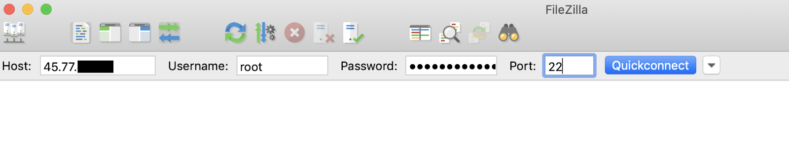 Sau khi install FileZilla thành công , mọi người cần nhập thông tin như sau :