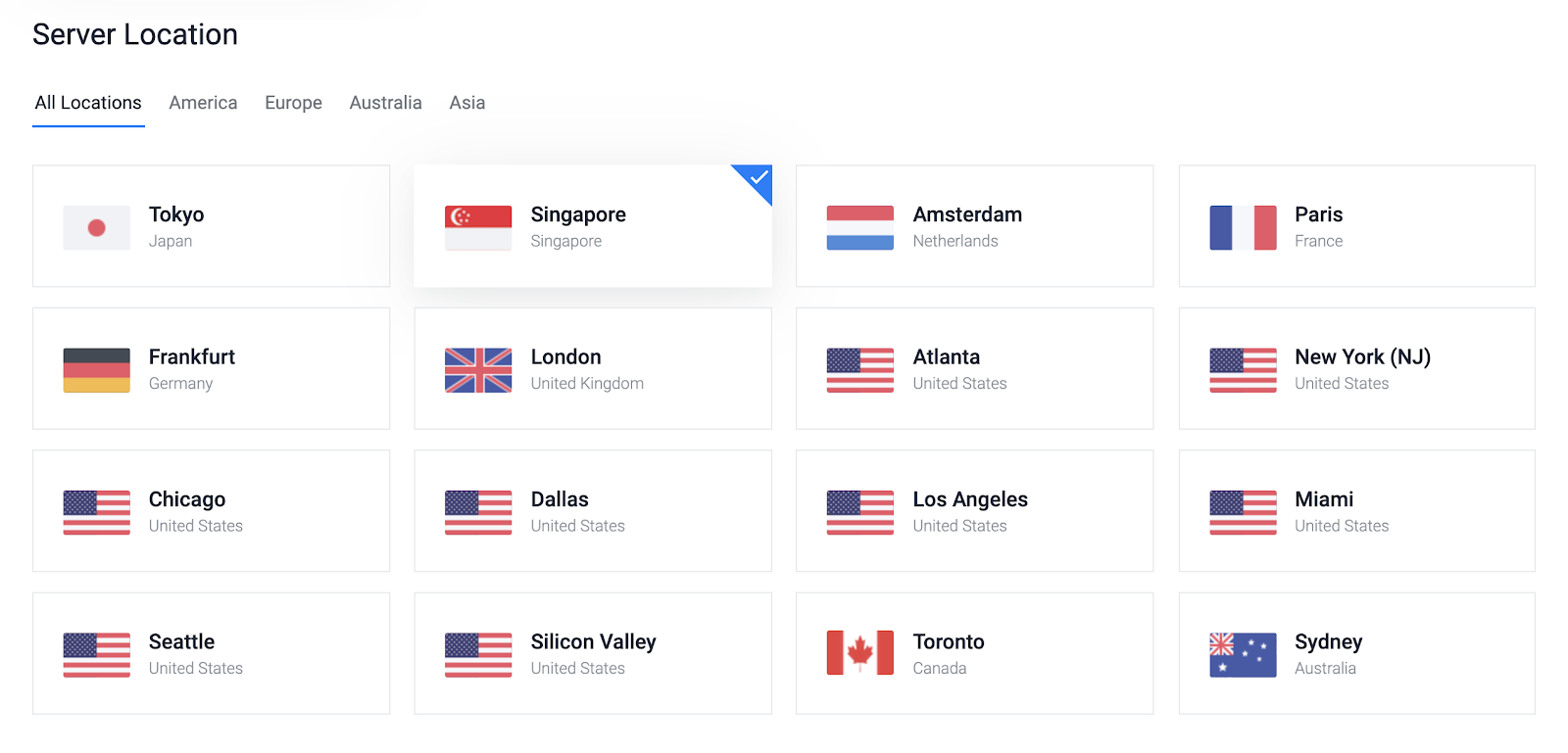 Ở đây , em chọn location tại Singapore . Còn mọi người muốn chọn địa điểm ở đâu cũng được , tuỳ mọi người ạ.
