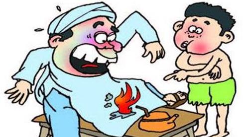 Ông đi mua the về may thành áo. Hôm nay ông mặc áo, ông hút thuốc. Tàn thuốc nó rơi vào áo ông, và áo ông đang cháy…