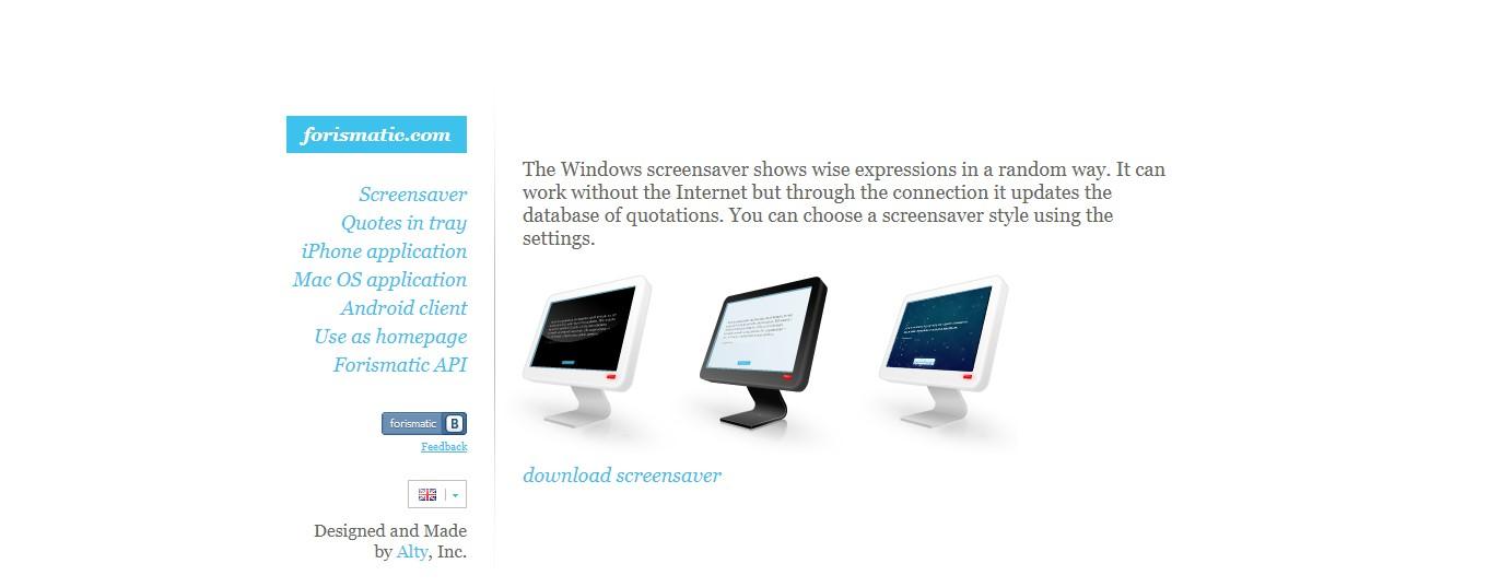 Ngoài ra trang web còn hỗ trợ các ứng dụng như sử dụng phần mềm làm trình bảo vệ màn hình máy tính (Screensaver) tại địa chỉ: http://forismatic.com/en/screensaver/