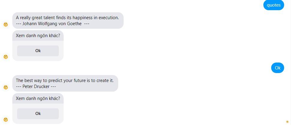 Hiện tại, mình có viết một chatbot sử dụng cái api này, bạn bạn có thể nghịch thử tại địa chỉ: https://m.me/253615288050421