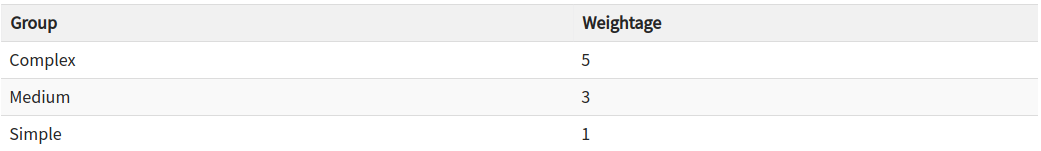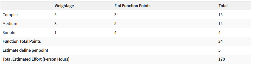 Trước khi bắt đầu nỗ lực ước tính thực tế, các điểm chức năng được chia thành ba nhóm như Phức tạp, Trung bình và Đơn giản như sau: