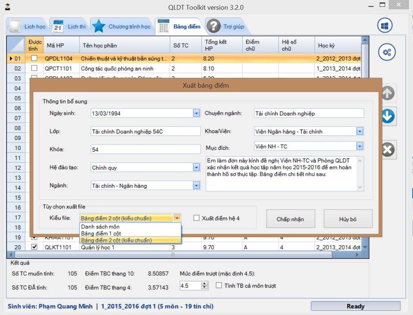 Phiên bản 3 cũng là phiên bản đầy đủ nhất của QLDT Toolkit với những tính năng xây dựng lịch học, xuất file bảng điểm các kiểu các kiểu. Đây là phiên bản nhiều tính năng nhất, đem lại nhiều tiện ích nhất, nhưng vẫn chưa phải là phiên bản nhiều người dùng nhất của mình. Mình dần dần nhận ra việc làm sản phẩm không phải là đắp thêm rất nhiều tính năng cho nó. Có những tính năng rất hay nhưng chỉ gọi là nice to have mà thôi. Có thể 1 số ít người dùng, hoặc có thể chả ai dùng.