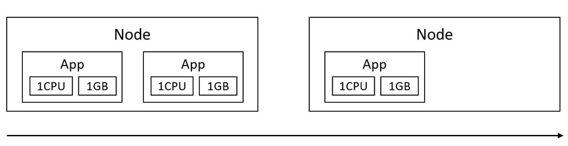 Các node (server) scale out theo lượng pod được sử dụng.
