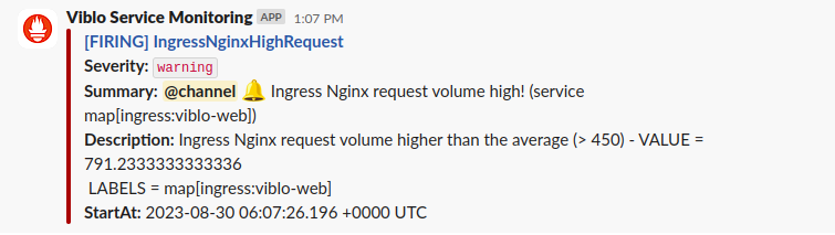 Slack alert: Các vấn đề của hệ thống đều alert tự động để đội ngũ quản trị viên có thể nắm được tình hình hệ thống và có các hành động ngay lập tức.