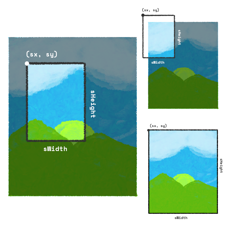 Mỗi giai đoạn xử lý đều cần tính toán lại width, height và x, y nếu cần thiết khi có sự kiện mousedown, mousemove và mouseup sao cho các vùng không được chạy ra ngoài của vùng ảnh.