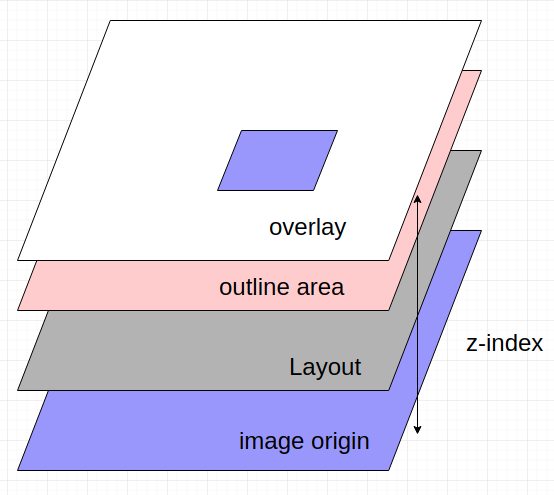 Như mô hình ở trên chúng ta sẽ có các lớp phủ trên 1 ảnh theo chiều z-index