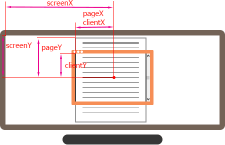 trong event của javascript có bắt tọa độ theo vị trí tương đối như clientX, clientY, pageX, pageX
