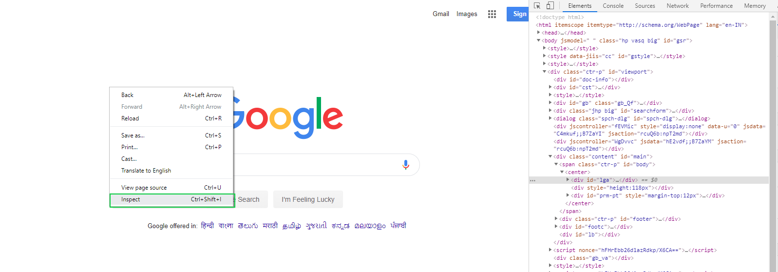 Select an element(Ctrl + Shit + C) click vào vị trí element muốn chọn trên trang web.
