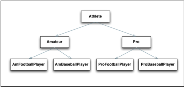 Trong mô hình lớp phân cấp, chúng ta có một lớp cơ bản Athlete. lớp Athlete có 2 lớp phụ là Amateur và Pro. Những lớp này phụ thuộc vào loại lực sĩ nghiệp dư hay chuyên nghiệp.