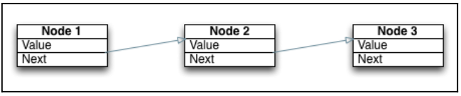 Trong linkedListReferenceType, chúng ta có 2 thuộc tính. đầu tiên là value nó chứa dữ liệu. Tiếp theo là next chỉ tới thành phần tiếp theo. Nếu next là nil nghĩa là đây là thành phần cuối cùng trong list. Nếu bạn cố gắng thực hiện linked list bằng struct thì nó sẽ trông như thế này