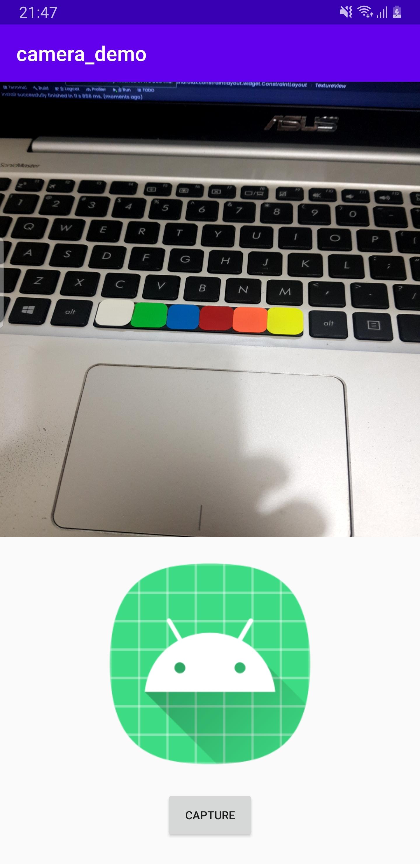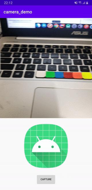 Build và thưởng thức thành quả, ta sẽ thu được ứng dụng có khả năng chụp và hiển thị ảnh như hình dưới.
