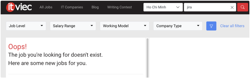 Trong khi đó, lướt thử ITViec – trang tuyển dụng IT lớn nhất Việt Nam, tìm với keyword Jira tôi không thấy có vị trí tuyển dụng nào.