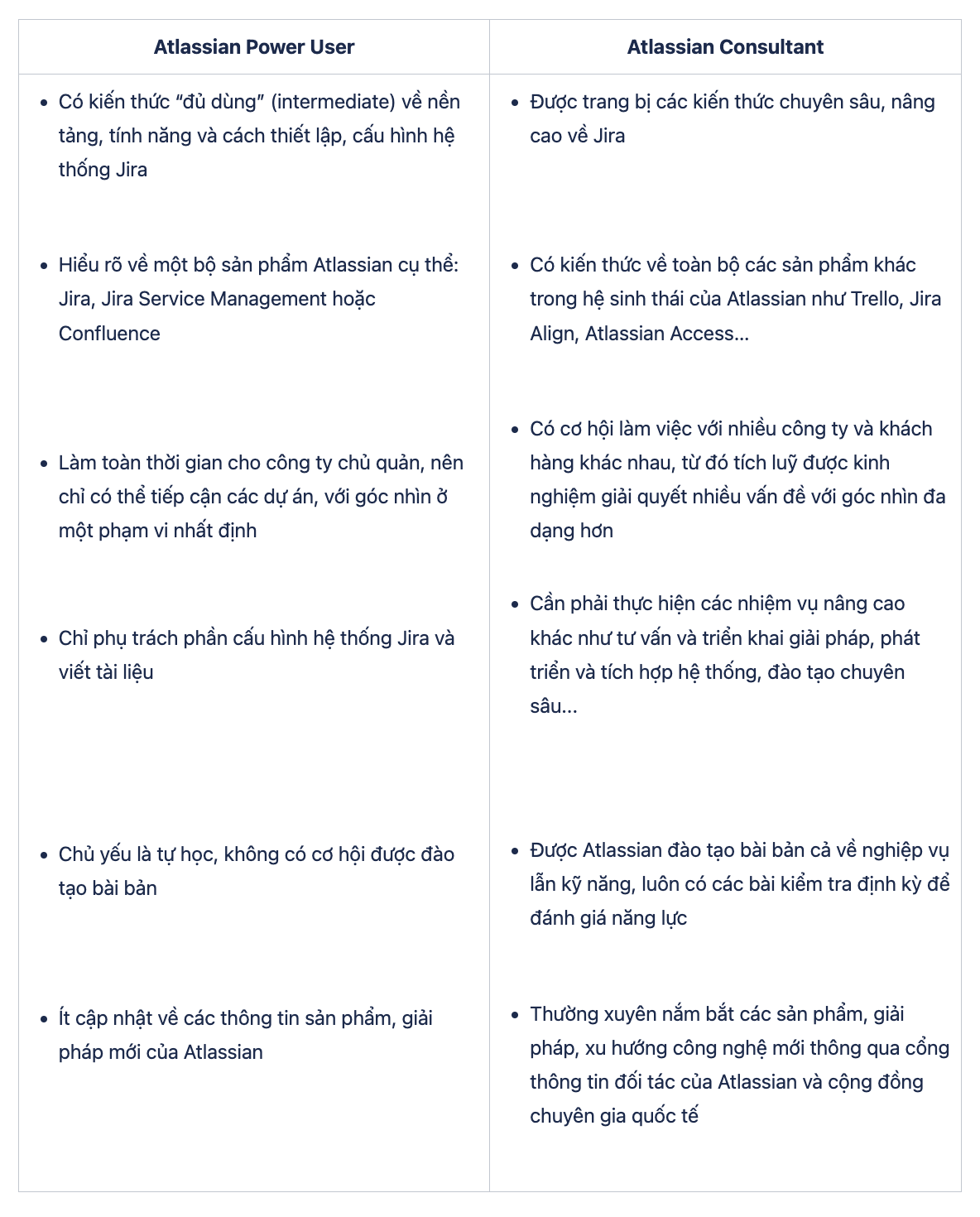 Sự khác biệt giữa Atlassian Power User và Atlassian Consultant là gì?