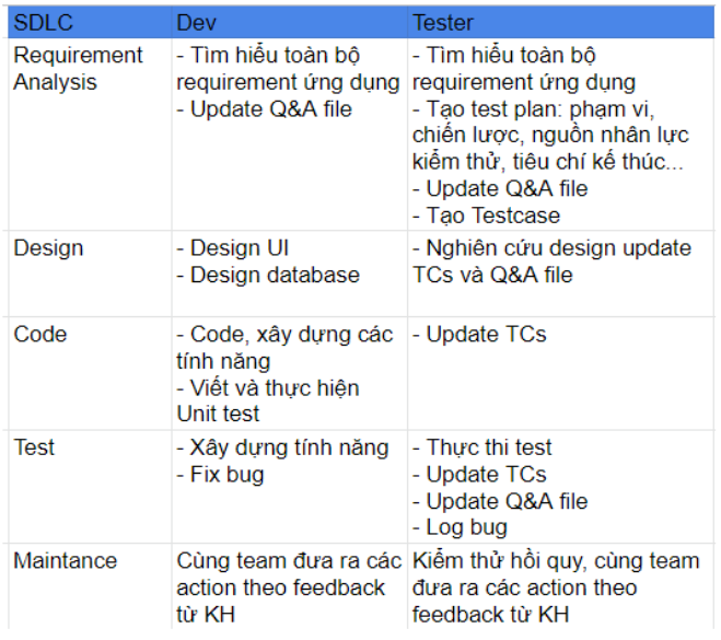 Tester: Là người kiểm tra và tìm kiếm lỗi ở sản phẩm do Dev tạo ra
