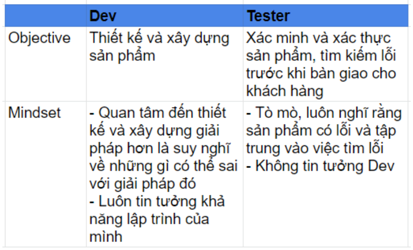 Vậy mindset của Dev-Tester khác nhau như thế nào