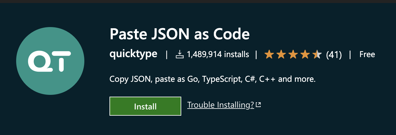 - Thì từ dữ liệu JSON để khai báo type trong ứng dụng được viết bằng Typescript thì các bạn sẽ copy Respone đó rồi check type cho từng field. Nhưng không, để chuẩn Type Name cũng như tạo type nhanh thì mình giới thiệu các bạn 1 extensions vô dùng ảo diệu và nhanh chóng như cái tên của nó: Paste JSON as Code. Nó đây nè: