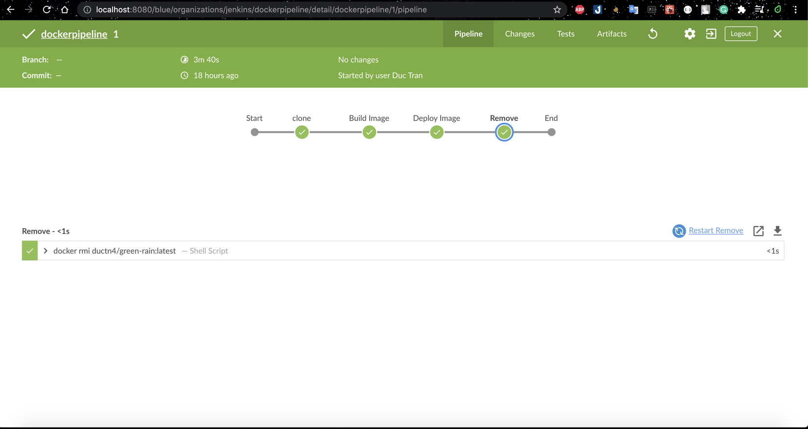 d5609c0f9f69 jenkins-new:v1 "/sbin/tini -- /usr/…" 18 hours ago Up 9 seconds 0.0.0.0:8080->8080/tcp, :::8080->8080/tcp, 0.0.0.0:50000->50000/tcp, :::50000->50000/tcp jenkins