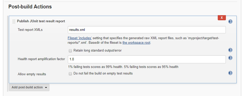 - Add Post Build Action ->Publish Junit Test Result Report