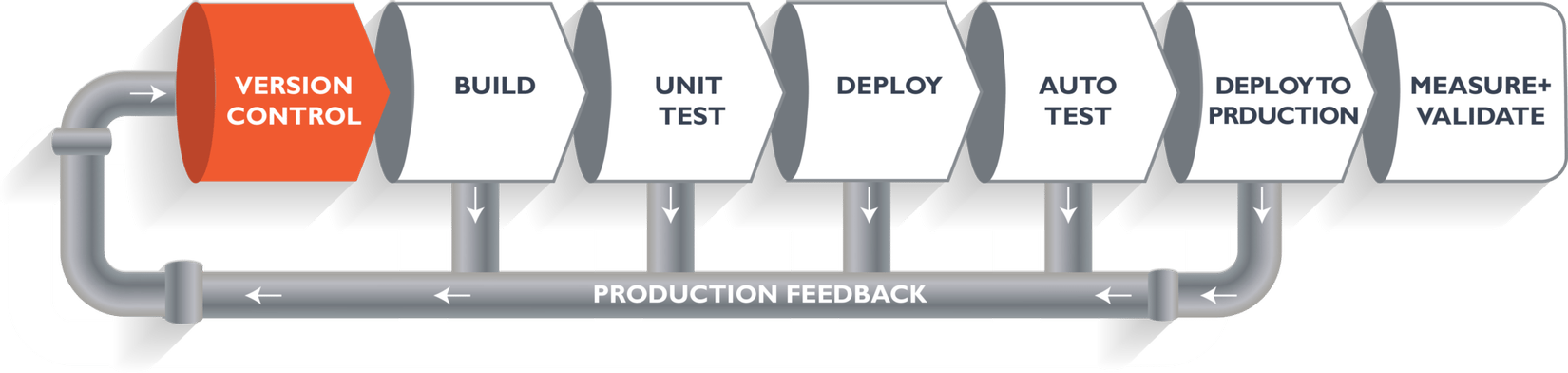 Trong đó, ở mỗi bước, nếu có lỗi xảy ra, code sẽ được fix và commit lại vào hệ thống quản lý phiên bản và tiếp tục đi theo luồng.