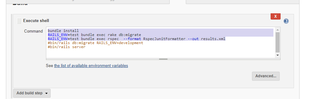 - Add build step -> Execute Shell