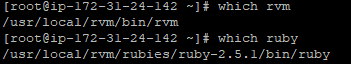Để biết RVM và Ruby path, chạy lệnh sau