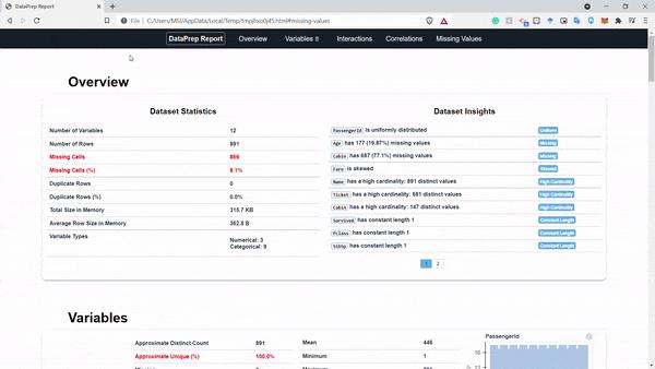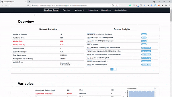 Với dataprep chúng ta có thể xuất ra 1 report hoàn chỉnh như sau:
