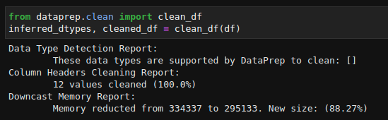 Khi muốn có một DataFrame sạch hoàn chỉnh, chúng ta có thể sử dụng API clean_df từ DataPrep. API này sẽ có hai đầu ra - kiểu dữ liệu và DataFrame đã được làm sạch.
